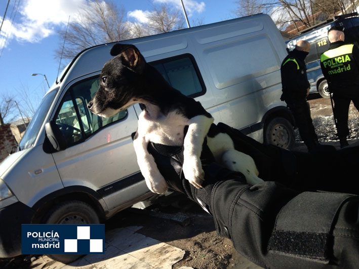 Los agentes escucharon los gemidos de los canes cuando patrullaban por la Cañada Real Galiana. Los primeros en ser localizados fueron nueve perros que estaban en una zona cubierta de escombros, "cuatro de ellos encerrados en la parte trasera de una furgoneta, sin comida ni agua y con paja en el suelo para que hicieran sus necesidades, en una atmósfera irrespirable", según declaraciones de la Policía. Otros tres de ellos se hallaban en  un redil cercado con vallas de obra, atados con alambres sin comida ni agua, llenos de parásitos. El suelo estaba cubierto de excrementos y en los alrededores había jeringuillas usadas por toxicómanos.